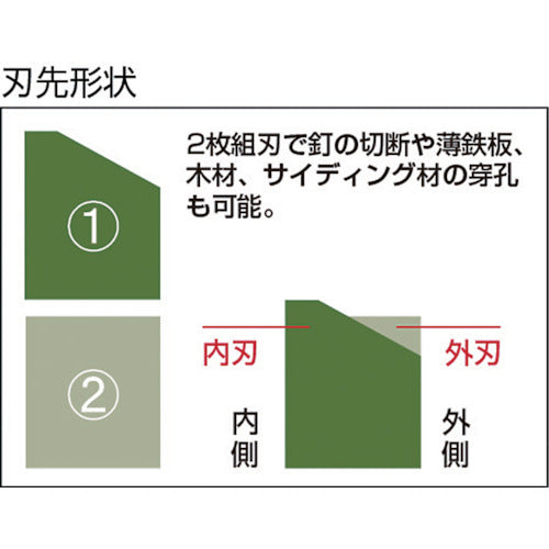 Adopting unique double blade features, with the inner-blade preceding the outer-blade, it is possible to drill into metal siding board, stainless steel/wood siding board as well as compound materials(metallic plate+insulating material+plywood)in one shot.Chips are efficiently discharged when drilling wooden materials. It is also possible to cut nails and drill through several layers of thin iron plates.Work material: Metal siding board, 2 x 4(also cuts nails), wood, plywood, PVC board, FRP, etc.Cutting Diameter (mm):160Effective Length (mm):135Shank:SDSBlade Thickness (mm):3Compatible model: Light hammer drill(rotation mode)Blade Part: Carbide TipCenter drill: High-speed steel