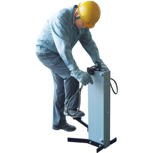Can perform Straightening of the slinging wire and check the safety.Wire operation can be done with both hands.Make the nature of the wire rope in a mountain shape and place it on a cradle, and step on the pedal in a valley shape to straighten (reform) it.Do the fixing of large and small with adjustment of pedal stepping.When the wire diameter is around 16mm?3, it is effective to widen the spacing of the cradle, and narrow it in the case of around 12mm.All cargo handling sites of general iron work related/forestry related/maritime/land transport/harbor loading/stone/civil engineering related/concrete products/crane car etc.Compatible Wire Diameter (mm):12 to 16H x L x W (mm):850 x 420 x 320Ductile cast iron(FCD450)SS400There are individual differences in the upper limit of the wire diameter that can be straightened, please use around 16mm?3 as a guide.When feeling the pedal depressing lightly or when finding a disconnection of strands, please replace with a new wire rope without hesitation.