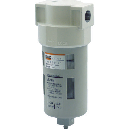 Remove moisture and solid materials of 5 microns or more in the compressed air.Filtration Precision (?Em):5Working Pressure (MPa):0.05 to 1.0Processing Air Volume ([[M3]]/min):1.3Connection Port Diameter:Rc1/4Total Length (mm):172Working fluid: AirFluid temperature: 5 to 60CDrain discharge method: Manual(however, automatically discharged when the pressure becomes 0.05MPa or less)