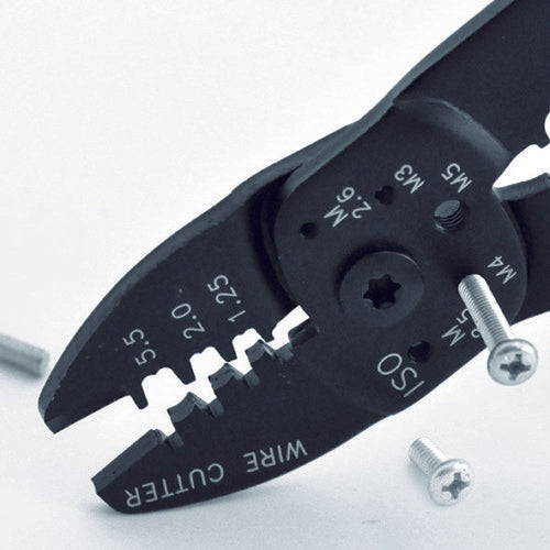 Possible to crimp the open barrel terminal, bare crimp terminal and disconnect the bolt, cable, and insulation of the cable with this one.For terminal crimping of car maintenance, wiring etc.For bare terminal:1.25, 2, 5.5Crimp Terminal ([[MM2]]) For Connector Terminal:1.25, 2, 5.5Total Length (mm):235